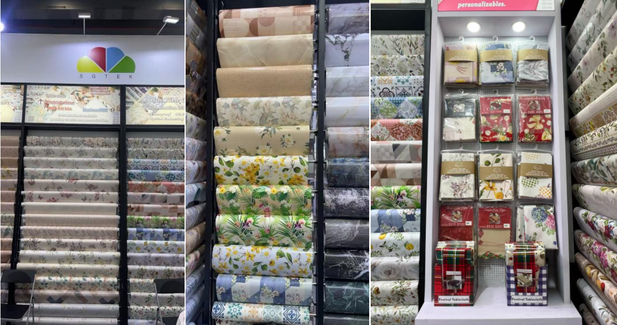 Investimos em um estande bem projetado que refletia claramente nossa identidade como fabricante profissional de toalhas de mesa de plástico, tapetes de mesa, jogos americanos, filme plástico transparente em relevo, filme eletrostático, filme de vidro e película para janela. O espaço foi acolhedor e organizado de forma eficiente, permitindo aos visitantes explorar confortavelmente a nossa gama de produtos.